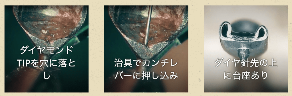 1. ダイヤのシャンクからの脱落が絶対起きない様に蒸着させる事。