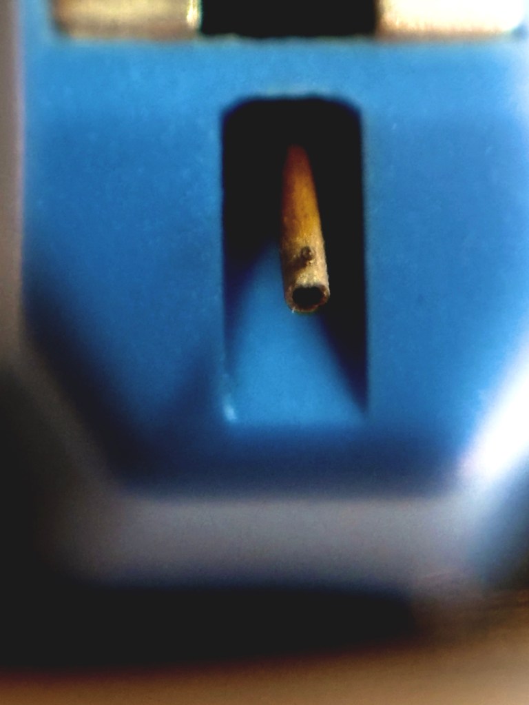 レコード針はレコード溝に刻まれた波形を捕まえて物理的な振動を行います。ダイヤの針先のついたカンチレバーを通して、その根元についてある磁石に振動を伝えます。磁石の振動でカートリッジ内のコイルと電磁波を生成し、音声信号にし、レコードプレーヤーに伝えます。レコード針はアナログレコード再生において、音声録音で空気振動を捕まえるマイクのダイヤフラムの様な役割を持った重要な要素です。