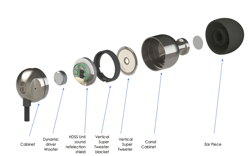intimeは、イヤホンに音を届けるために2ウェイコアドライバーユニットを採用しています。トゥイーターの素材にピエゾセラミックを採用したのは、同社の革新的な試みです。