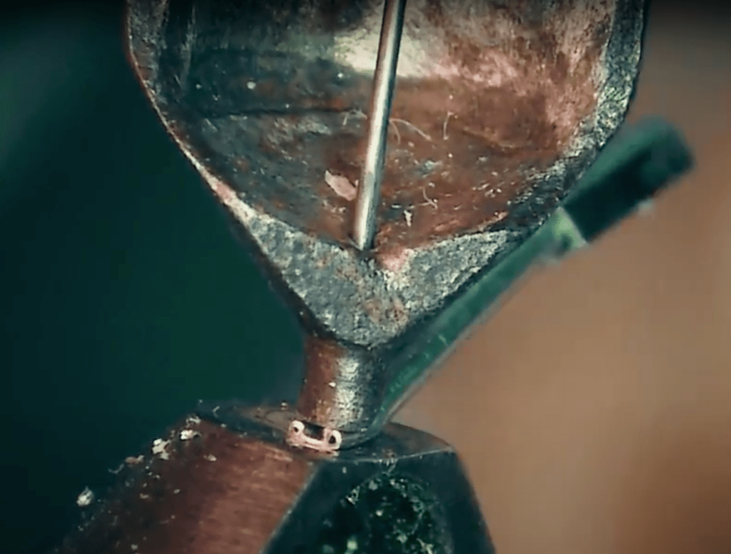 無垢針には、アルミ製カンチレバーに嵌合するための金属台座がありません。接着剤を2回塗布して接合しています。台座というバッファーがないため、波形は滞ることなくカンチレバーに伝わります。ここでソリッドな低域が生まれます。